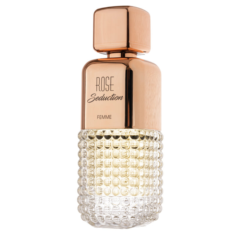 Apa de Parfum Rose Seduction Femme de la Fragrance World este un parfum seducător creat special pentru femei care își doresc să emane rafinament și mister. În deschidere, te învăluie un amestec vibrant de șampanie și piper roz, care oferă o notă efervescentă și ușor picantă. Inima parfumului pulsează cu eleganța trandafirului și dulceața discretă a florii de piersic, oferind o senzație romantică și catifelată. Pe măsură ce parfumul se așază pe piele, lasă în urmă o bază caldă și senzuală de mosc și note lemnoase, conturând o prezență memorabilă. Ambalat într-un flacon de 100ml, Rose Seduction Femme este alegerea ideală pentru momentele în care vrei să cucerești prin simplitate și rafinament.