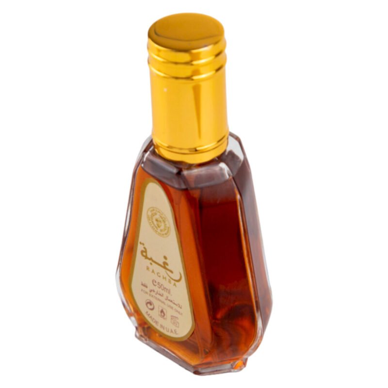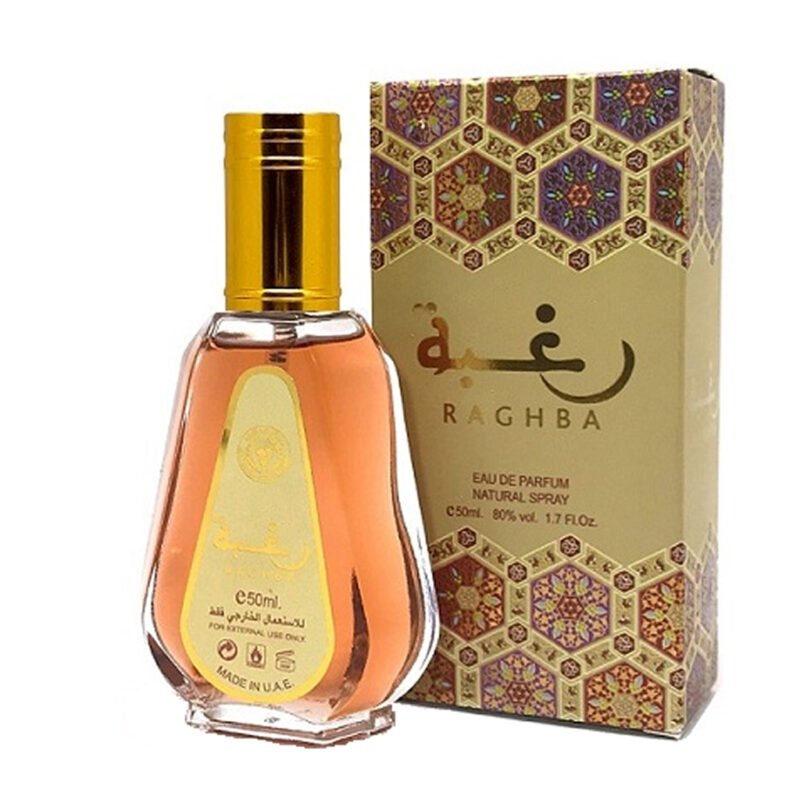 Raghba este un parfum oriental gurmand cu Oud și vanilie. Nota de vârf se deschide delicios cu vanilie, Oud și note condimentate. Mosc, tămâie și zahăr urmează în nota de mijloc. Baza completează parfumul cu lemn de santal, ambră și mosc.